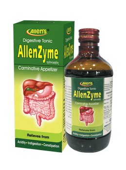 Allenzyme is a non-habit forming Digestive tonic and appetizer. Allenzyme tones up alimentary canal, improves appetite, regulates digestion, normalizes liver function, regulates stool-forming process and thus relieve symptoms commonly associated with disturbances of Gastro-intestinal tract.