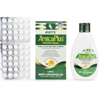 Combined action of ArnicaPlus and Triofer arrests excessive falling of hair, prevents premature hair graying, removes dandruff, Vitalizes hair roots, promotes new growth of healthy hair, adds longivity to hair.