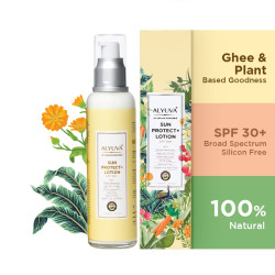 Alyuva Sun Protect+ Lotion is made using PUFA (Polyunsaturated Fatty Acids) free oils like Shata Dhauta Ghrita, Coconut Oil, Avocado Oil and Red Raspberry Oil which protect the skin from pigmentation, premature ageing and cellular damage caused by UV light. Alyuva’s Sun Protect+ contains a high ratio of non-nano uncoated Zinc Oxide which makes it “broad spectrum” as it protects against both UVA and UVB rays. All sunscreen products protect against UVB rays, which are the main cause of sunburn. But only “broad spectrum’ sunscreens protect against UVA rays, which cause serious skin problems and premature ageing. Alyuva sun protect has an optimum sun protection factor (SPF) of 30 +. Alyuva Sun Protect+ Lotion is infused with exotic herbs like Calendula and Carrot Seed extract and Beeswax which make it non sticky and water resistant.