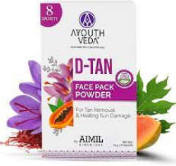 Ayouthveda D-Tan Face Pack Powder is a powerful yet gentle blend of botanicals carefully chosen to combat stubborn tan and heal sun-damaged skin, unveiling a brighter, more radiant complexion. Enriched with the goodness of Multani Mitti, known for its deep cleansing properties, and Cow Milk, packed with essential proteins and vitamins to help detoxify and nourish your skin promoting a supple and youthful appearance. Papaya and Orange, rich in vitamins A and C, provide potent antioxidants that repair sun damage and even out skin tone.