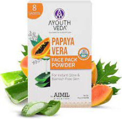 Papaya Vera Face Pack Powder. This exquisite face pack is a sublime fusion of exfoliating Papaya and skin-illuminating (Varnya) herbs, working harmoniously to purify skin's surface by eliminating impurities, while exquisitely diminishing blemishes. Behold the enchanting transformation as it bestows a luminous radiance upon your complexion, unveiling a glorious glow that is sure to captivate. Soothing Vetiver calms skin irritation & redness whereas antioxidant-rich Green tea and other botanicals orchestrate a symphony of serenity, aiding in the youthful skin