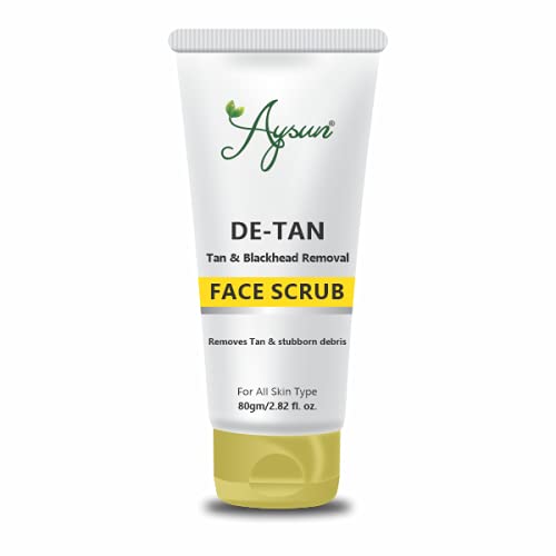 Aysun De-Tan ( Tan Removal & Blackhead ) Face Scrub is a Skin - clearing scrub for thick , tanned - oily skins. De-flakes, refines, softens tiny lines . Leaves skin refreshed.
