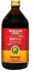 Abhayamrita (Abhayarishta Special) is a remedy for Piles and Constipation as it contains the main ingredient Abhaya (Terminalia chebula). Abhaya acts as a mild laxative. Abhaymrita is more efficacious as it contains additional valuable herbs like Sanaya, Nagkeshar and Talispatra. To be taken under Medical Supervision.