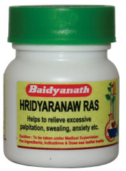 Baidyanath Hridyarnav Ras Tablet is a heart tonic, calming nerves, soothing palpitations, and aiding minor cardiac issues. It relieves chest heaviness and breathing difficulties, promoting overall cardiovascular health. Consult with a healthcare professional before use.