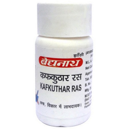 Kafkuthar Ras is herbomineral Ayurvedic medicine. It is useful in treatment of phlegm, respiratory infections. This medicine contains Lauha and Tamra bhasma which loosen cough and helps in easy expulsion. The other medicinal herbs used in preparation of this medicine are Pippali, Maricha and Sonth (known as Trikatu). Kaph Kuthar Ras is an Ayurvedic medicine, with herbal and mineral ingredients, in tablet form. It is used in Kapha type of fever, with heaviness in body