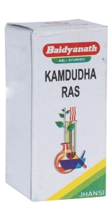 Kamdudha Ras relieves chronic acidity, heartburn, stomach ulcers, and colic pains.