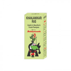 Khanjanikari Ras is herbomineral Ayurvedic medicine. This medicine has alterative, stimulant and nervine properties. Khanjanikari Ras is prepared by taking equal part of Malla sindur, Rajat bhasma and Purified Vishamushti or Kuchala (Strychnos nux-vomica). Kuchala is nervice tonic and has central nervous system stimulating properties. This medicine is indicated in treatment of paralysis (pakshaghat), gout and many other vata vyadhis.