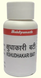Kshudhakari Bati is polyherbal Ayurvedic medicine useful in treating digestive disorders. Kshudhakari Bati is combination of digestive spices with sugar, salth and tankan. It has carminative and anti-spasmodic properties. The main ingredient of this medicine is lemon juice, Sendha namak, Cumin seeds, and trikatu. This medicine is manufactured by Baidyanath.Here is given more about this medicine, such as benefits, indication/therapeutic uses, composition and dosage. It helps in tastelessness, indigestion, abdominal pain, sour belching, flatulence & gas It reduces Vata and Kapha, increases Pitta
