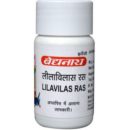 Lilavilas Ras is a herbomineral Ayurvedic medicine. It is useful in treatment of Amlapitta. Amla pitta is a Pitta-vikar. It is condition of excess pitta inside body causing burning sensation, acid reflux indigestion, bloating, burping etc. Lilavilas ras gives relief in acidity and related ailments. It is used in treating gastritis and bleeding diseases.