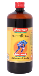 Baidyanath Maharasnadi Kadha is a special formula prepared in combination with reputed Ayurvedic preparation 'Guggul'. This gives you faster relief in joint pains, inflammation & sprain than ordinary Maharasnadi Kadha. For more effective results, use Baidyanath Rheumartho Tablets along with this.