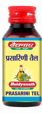 Baidyanath (Jhansi) Prasarini Tel is an ayurvedic oil, used in the treatment of rheumatoid arthritis, sciatica, neck pain, stiffness, etc. It is used for external applications.