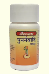 Punarnava Mandur is an herbal-metallic Ayurvedic medicine in tablet form which main ingredients are Mandur Bhasma and Punarnava.It is processed in Gou-mutra.It is mainly used in the treatment of Anemia, splenomegaly,piles,fever,iron deficiency and liver-spleen disorders etc. This medicine is more commonly used in North Indian Ayurvedic practice.