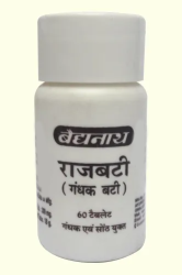 Baidyanath (Jhansi) Rajbati (Gandhak Bati) is an ayurvedic medicine that is primarily used for the treatment of stomach disease. The key ingredients of Baidyanath Rajbati (Gandhak Bati) are ginger, shuddha gandhak and lemon. The correct dosage of Baidyanath Rajbati (Gandhak Bati) depends on the patient's age, gender, and medical history.