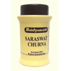 Saraswati is the Hindu Goddess that represents knowledge, wisdom, learning, art, music, creativity and inspiration. This churna (herbal powder) is named after Goddess Saraswati, as it will enhance the same powers in anyone who consumes this powerful Ayurvedic medicine.Saraswat Churna is ayurvedic churna or powder used for nervous system disorders. Saraswati Churna is a tridoshic compound, although it is mainly pacifying for Vata dosha. it is useful in Alzheimer’s disease, vmania, epilepsy and mental disorders.Saraswati Churna is a tonic for the nervous system and the adrenals, and a rejuvenative to the mind and intellect.