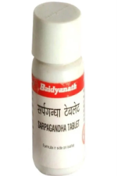 Baidyanath Sarpgandha Tablet is an ayurvedic medication made from sarpagandha churna. It is directed to individuals suffering from high blood pressure, depression, and sleeplessness. Sarpagandha is also used to cure snake bites and remove toxins from the body.