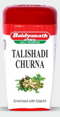 Baidyanath Talisadi Churna contains Talishpatra, Trikatu, Banshlochan, Ela, and Dalchini. Talishpatra has anti-inflammatory properties and helps in treating respiratory diseases.
