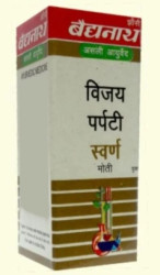 Vijay Parpati is an Ayurvedic medicine, with herbal and mineral ingredients, in powder form. It is used in variouso abdominal disorders, diarrhoea, liver disease etc. This medicine should only be taken strictly under medical supervision.