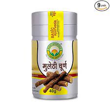 Basic Ayurveda's Mulethi Churna is also known as mulethi churna is one such classical ayurvedic remedy that has a centuries-long repute of being the ultimate grandma’s remedy for cough and sore throat. Mulethi Churna is useful in Acidity, Flatulence, hyperacidity, cough, and cold.