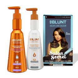 Flaunt your hair hues without letting them fade away! Meet Chocolate Dark Brown Hair Colour & Care Kit, your go-to trio for salon-like gorgeous hair colour at the comfort of home. Packed with Salon Secret High Shine Chocolate Dark Brown Hair Colour, Colour Protect Shampoo & Conditioner, the kit gives you rich hair colour & keeps it as fresh and vibrant as day 1. The Hair Colour gives you 100% grey coverage and a beautiful chocolate dark brown colour that lasts up to 8 weeks. That’s not all! It also adds a glossy shine to your locks like you just stepped out of the salon. Formulated with Amino Acids & UV Filters, the Colour Protect Shampoo & Conditioner gives your hair up to 90% colour protection for up to 12 weeks.* The result? Gorgeous hair colour that lasts & lasts.