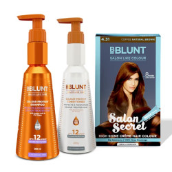 Flex your hair hues without the fear of them fading away! Meet Coffee Hair Colour & Care Kit, a team of three for salon-like gorgeous hair colour at the comfort of home. Packed with Salon Secret High Shine Coffee Natural Brown Hair Colour, Colour Protect Shampoo & Conditioner, the kit gives you rich hair colour & keeps it as vibrant as day 1. The Hair Colour gives you 100% grey coverage and a beautiful coffee brown colour that lasts up to 8 weeks. That’s not all! It also adds a glossy shine to your locks like you just stepped out of the salon. Formulated with Amino Acids & UV Filters, the Colour Protect Shampoo & Conditioner gives your hair up to 90% colour protection for up to 12 weeks.* The result? Gorgeous hair colour that lasts & lasts.