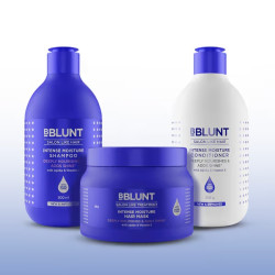 Meet BBLUNT Frizz-Free Hair Combo that transforms your dry, unmanageable, and frizzy hair to smooth and shiny. Crafted with the nourishing benefits of Jojoba Oil and Vitamin E, this combo deeply moisturizes your strands, making them softer and frizz-free. The Intense Moisture Shampoo deeply cleanses and hydrates you hair while Intense Moisture Heat Hair Spa Mask gives you a salon-like spa at home in just 5 minutes. This combo is also infused with our signature Shine Tonic that adds a glossy shine to your locks. The result? Healthier, shinier and smoother hair straight from your dreams.