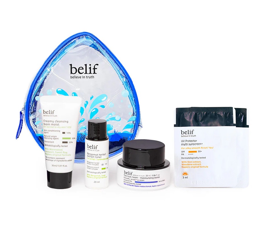 Get your winter glow on with this 4-step K-beauty routine from belif. Carry your winter skincare essentials in an adorable pouch that consists of:
