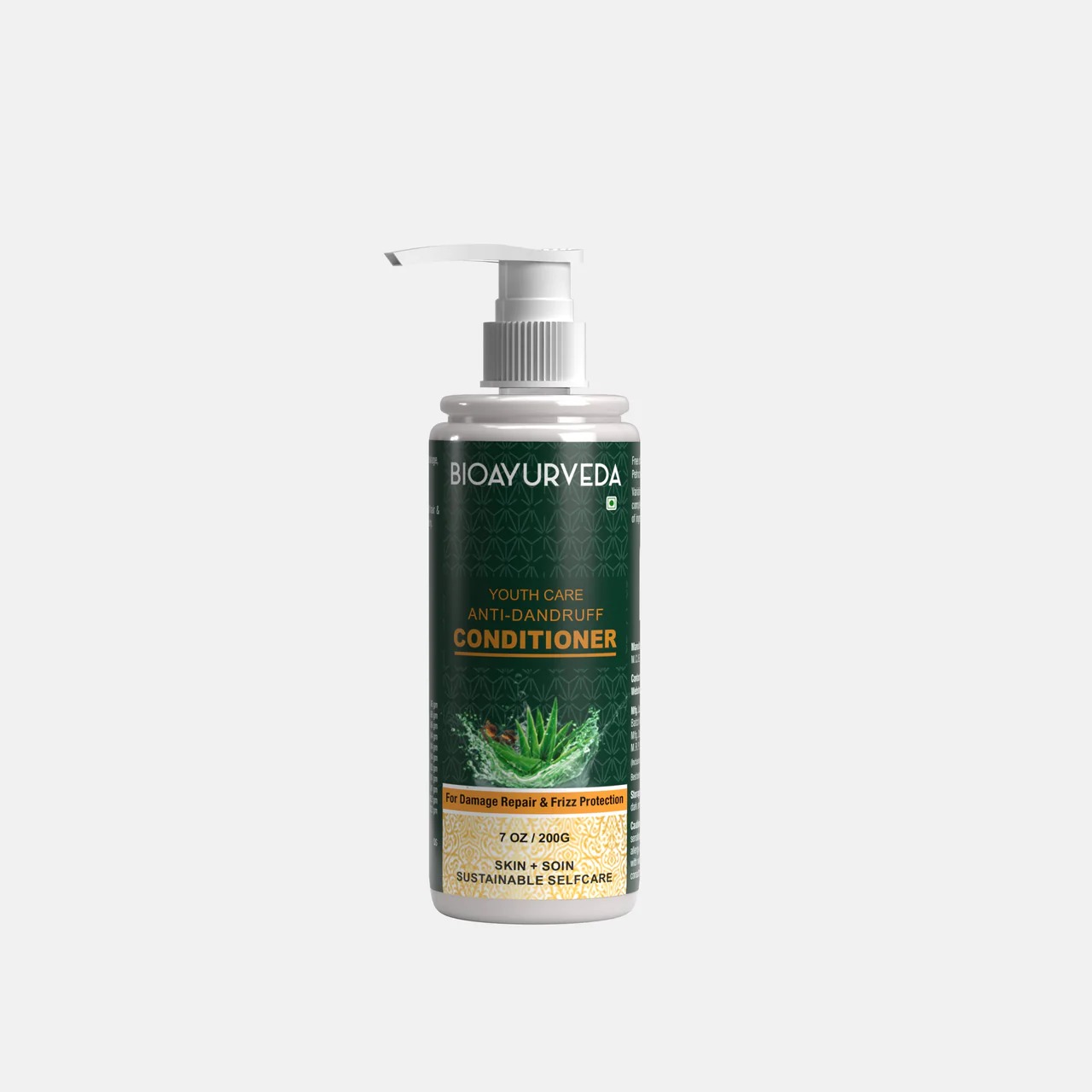 YOUTH CARE ANTI-DANDRUFF CONDITIONER is a unique blend of organic herbs, along with vital minerals and essential & natural oils that is formulated to purify and protect from dandruff causing bacteria and fungus while nourishing hair and scalp with hydration and healing. With therapeutic action, it curbs irritation, flakiness and scalp itching. Moisturising and rejuvenating, it repairs hair damage and stimulates hair follicles for growth and vitality.