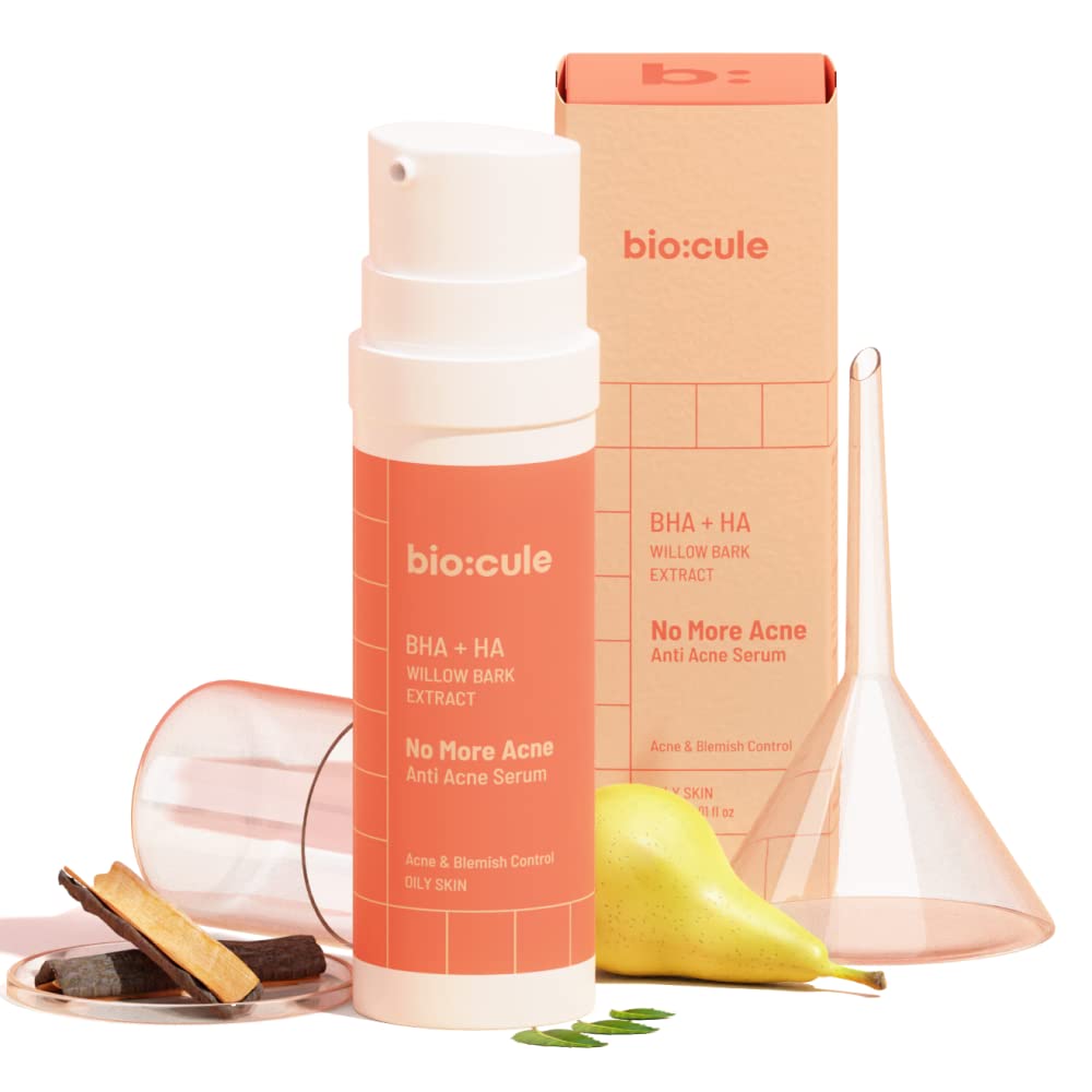 Formulated using a clinically proven combination of 8 botanical actives derived from Soybean, Pear, Willow Bark, Amur Bark, and Neem along with Natural Hyaluronic Acid, No More Acne Serum works to purify the skin of excess sebum and provides gentle exfoliation resulting in Acne & Oil Free Clear skin.