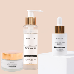 Introducing Biohills Black Tea & Vitamin B3 Oil Control Gel Moisturiser, your go-to solution for clear and balanced skin. This advanced formula combines Salicylic Acid to unclog pores and prevent breakouts, with Tea Tree Oil and Neem Leaf Extract to fight acne-causing bacteria and reduce inflammation. Vitamin B3 helps control oil production and minimizes pores, while Black Tea and Dandelion Extracts soothe and calm your skin. Common Thyme Oil adds an extra layer of antibacterial protection. Experience the perfect blend of hydration and oil control with Biohills Black Tea & Vitamin B3 Oil Control Gel Moisturiser for a clear, refreshed complexion. Introducing Biohills Black Tea and Acne Control Face Wash, your solution for clear, healthy skin. This powerful formula combines Salicylic Acid to unclog pores and prevent future breakouts, with Tea Tree Oil to reduce acne-causing bacteria. Neem Leaf Extract provides strong antibacterial properties, while Common Thyme Oil soothes skin irritation and inflammation. Black Tea Extract calms and revitalizes your skin. Say goodbye to acne and hello to a refreshed, clear complexion with Biohills Black Tea and Acne Control Face Wash. Introducing Biohills Advanced Acne Clarifying Face Serum, your ultimate solution for clear and radiant skin. This potent formula harnesses the power of Salicylic Acid to unclog pores and prevent future breakouts, while Tea Tree Oil and Neem Leaf Extract work together to combat acne-causing bacteria and reduce inflammation. Vitamin B3 controls oil production and minimizes pores, enhancing your skin's overall texture. Black Tea Extract and Dandelion Extract soothe and calm your skin, reducing redness and irritation. Transform your skin with Biohills Advanced Acne Clarifying Face Serum, and experience the confidence of a clearer, healthier complexion.