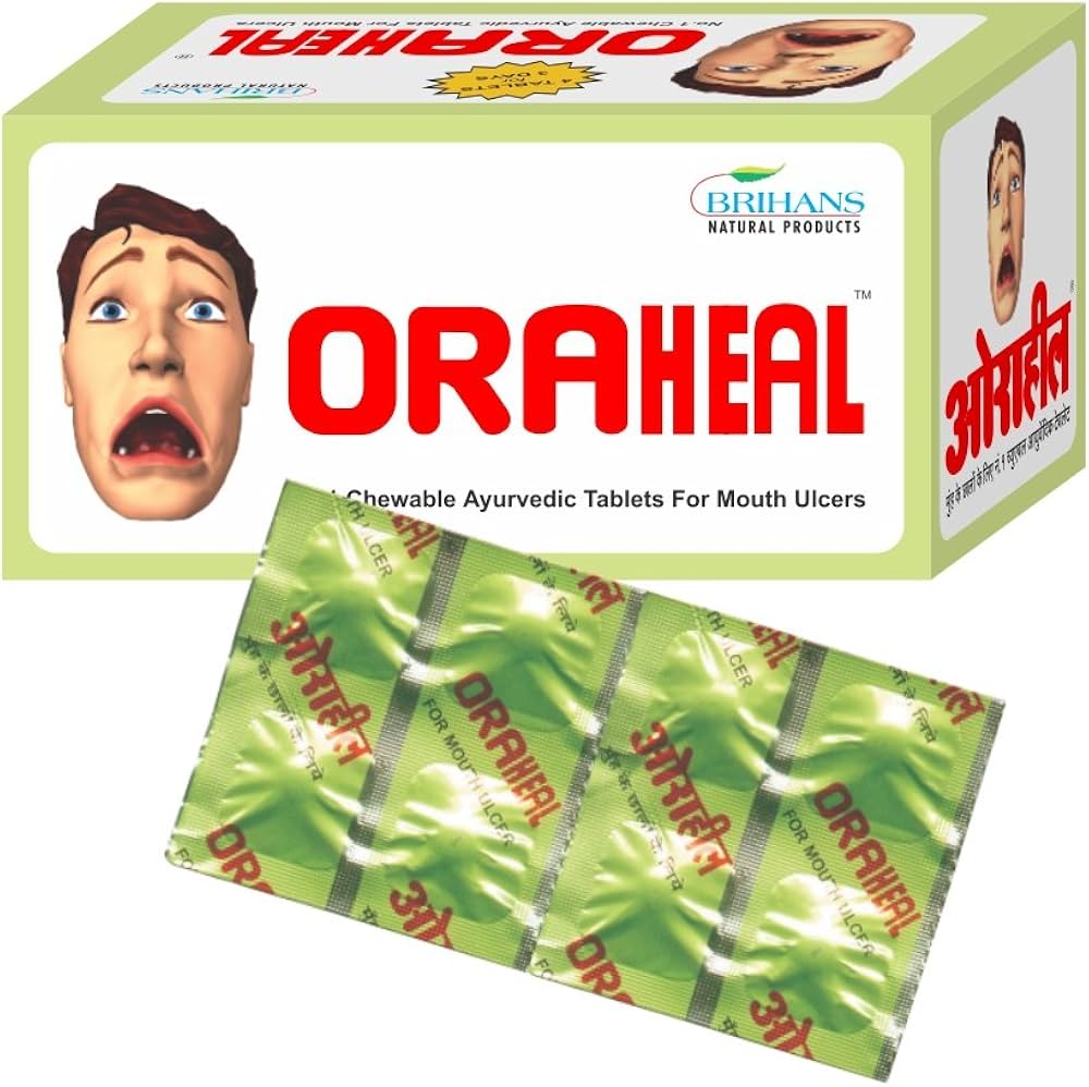 Oraheal Mouth Ulcer Tablet, a chewable Ayurvedic tablet for mouth ulcers, is a 100% natural remedy. Oraheal relieves pain and coats the tender lining of the mouth, protecting it from further damage, even as it heals the ulcers. Convenient to carry, easy to take dosage, non-messy and hygienic. Does not cause any painful stinging and tastes good as well.