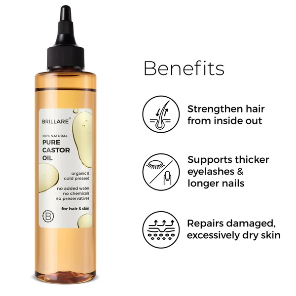 100% organic, cold pressed castor oil for stronger, fortified hair/eyelashes & to repair damaged skin.