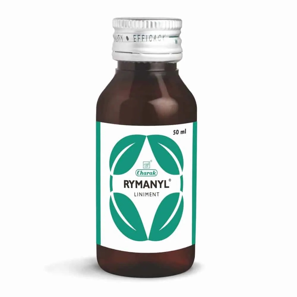 Rymanyl liniment is a topical composition for reducing joint pain and swelling. Karpur (Camphora officinarum) exerts counter-irritant activity thereby, relieving pain instantly. Erand (Ricinus communis), Deodar (Cedrus deodara)