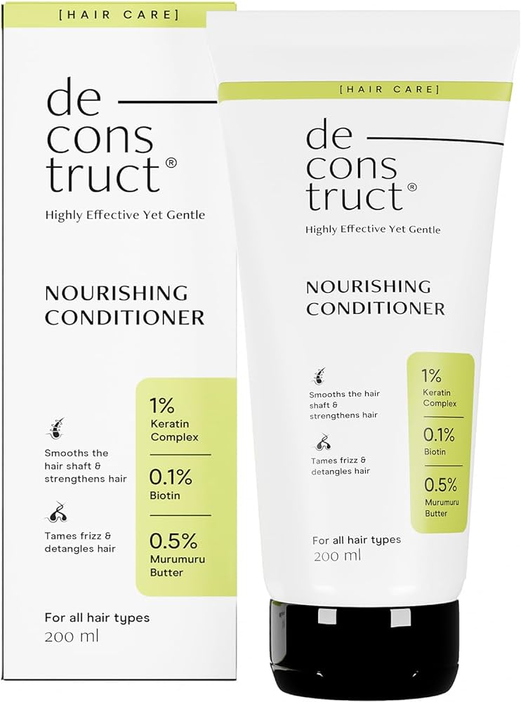 Deconstruct Nourishing hair conditioner is a Biotin + Keratin conditioner that contains the goodness of Biotin, a vitamin, and Keratin, a protein that significantly supports hair health by nourishing and strengthening the hair. Conditioner enriched with murumuru butter, provides deep moisture to the hair and maintains hydration. It also helps smooth dry and frizzy hair and adds shine to it.
