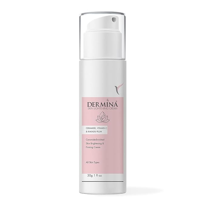 Dermina’s Ceramide and Vitamin C infused Skin Lightening Cream is a product designed to lighten the skin tone or reduce the appearance of hyperpigmentation, dark spots, or uneven skin tone. These ingredients present in the creams are often used to address issues such as acne scars, sun damage, melasma, or age spots.