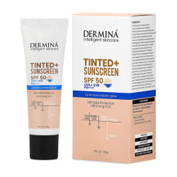 Introducing Dermina Tinted+ Sunscreen SPF 50, your one-stop shop for sun protection and a bright complexion! This lightweight, oil-free formula boasts broad-spectrum SPF 50 protection (PA+++), shielding your skin from harmful rays while a sheer tint evens your tone for a natural glow. Perfect for all skin types, it absorbs quickly, leaving no white cast, and feels weightless The subtle tint helps to even out skin tone, minimizing imperfections and leaving you with a natural, healthy glow. This makes it perfect for everyday wear, even without makeup. Dermina Tinted+ Sunscreen SPF 50 suits all skin types, including acne-prone skin. It’s non-comedogenic, meaning it won’t clog your pores, and dermatologist-tested for safety and gentleness.
