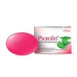 Dr. JRKs Psorolin Soap (Medicated bathing bar) is suitable for treating skin conditions such as all types of psoriasis and other dry skin conditions. Psorolin medicated bathing bar contains oil of extracts of wrightia tinctoria and aloe vera that have excellent therapeutic properties for the management of psoriasis and in general for improving the overall skin condition and maintaining luster. Wrightia Tinctoria helps to control of exfoliation of epidermis and restoration of normal skin. It also has anti-fungal properties.