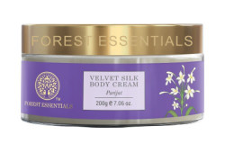 The Forest Essentials Velvet Silk Body Cream Parijat deeply nourishes and softens the skin.