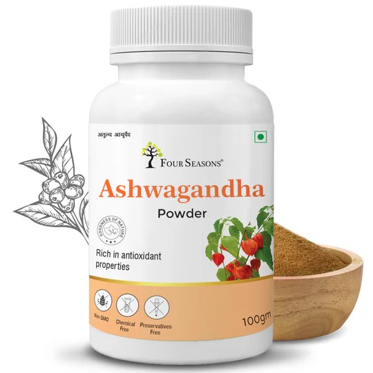 Four Seasons Ashwagandha Powder is a rejuvenating herb which helps in reducing stress and anxiety. It helps in reducing fatigue and improves stamina. Ashwagandha is known to have anti-inflammatory properties and also helps in regulating blood sugar level. Four Seasons Ashwagandha Powder is a rich source of antioxidants that help in fighting free radical damage. It supports healthy reproductive system in both males and females while also strengthening the immune system. Four Seasons Ashwagandha Powder contains can help calm the brain, reduce swelling, regulate blood pressure levels, and support the immune system. Ashwagandha is an adaptogen that is used for conditions related to stress.