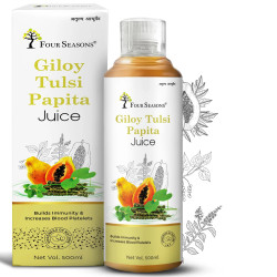 Four Seasons Giloy Tulsi Papita Juice is well known for its multiple benefits. It's one of the ingredients is giloy which is known as amrita because of its innumerable medicinal properties. Tulsi or ocimum sanctum is also well-known immunity booster. Giloy along with tulsi is used for a rejuvenation preparation. Giloy Tulsi Papita Juice is an effective solution to fight against all kinds of issues. It promotes overall health and well- being. It also provides relief from weakness, acidity and gastric problems.