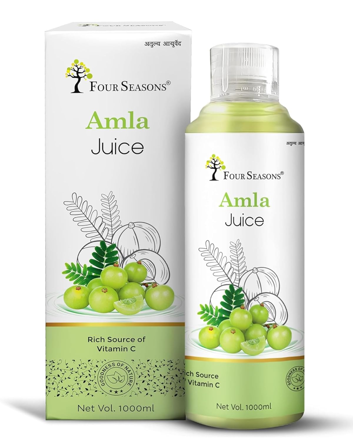 Amla is considered as a power house of essential nutrients and minerals. Amla Juice is made using high quality Amla fruit by maintaining the highest standards of hygiene and safety. Four Seasons Amla Juice has been extracted from fresh Indian Gooseberry or Amla to provide multiple health benefits for a better body and mind. Enriched with rich source of Vitamin C, Iron, Phosphorus, Folic Acid, Carbohydrates, and Calcium. The very high content of natural vitamin C strengthens immunity and helps in detoxification. . It is free from any artificial sugar or flavours. Additional benefits may include blood purification and weight management.