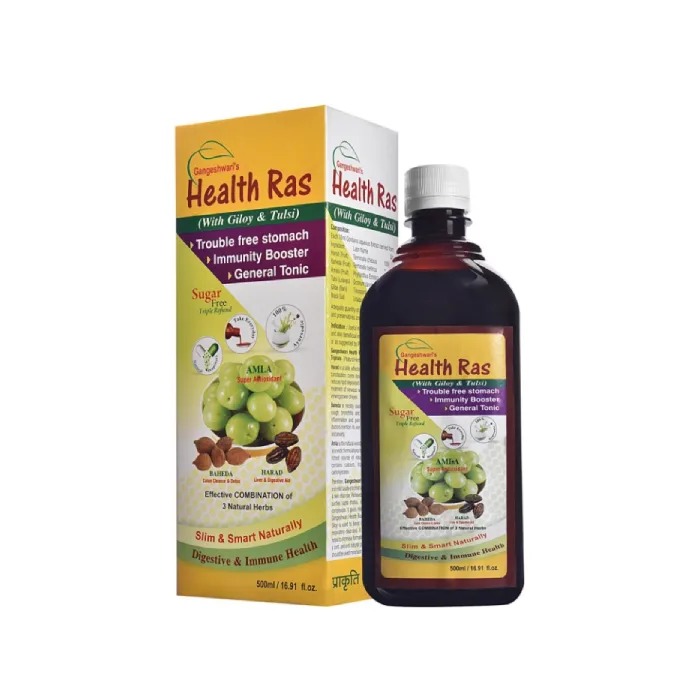 Regular use of Health Ras aids in promoting healthy digestion, relieving digestive discomfort, and improving overall digestive function. It works synergistically to enhance energy levels and maintain strength in the body. With its natural ingredients, Health Ras supports body purification and helps in improving overall well-being.