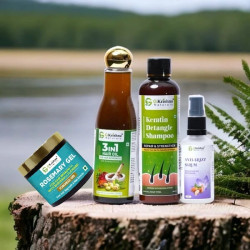 This complete hair regrowth kit is the perfect solution for restoring your lost hair to its original, natural state. It is made with ayurvedic and natural ingredients which all work together to regrow hair, increase hair density, and reduce hair fall.