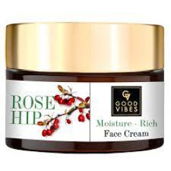 Treat your skin with moisture like no other with Good Vibes Moisture Rich Rosehip Face Cream. It is made to heal dry and dull skin. Infused with Rosehip extracts, it helps in lightening dark spots and nourishes the skin for a brighter-looking skin