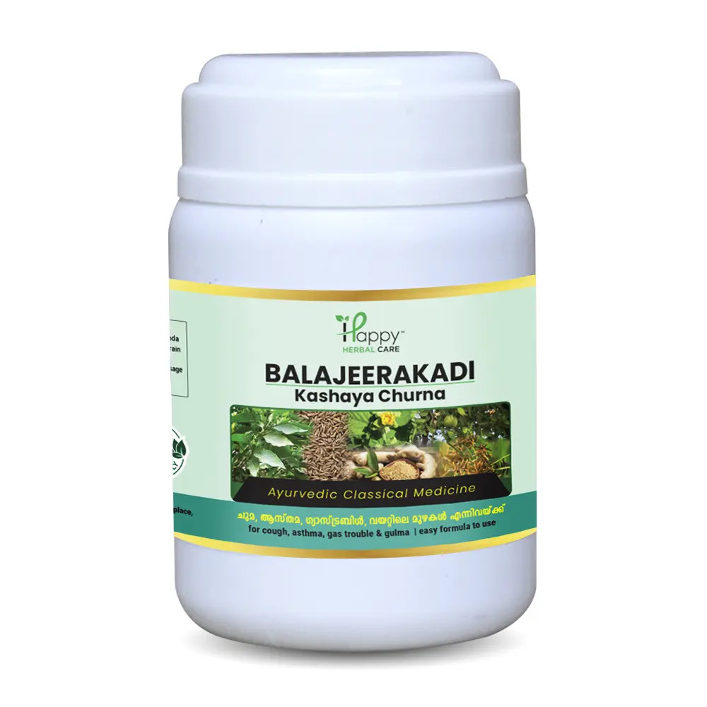 Balajeerakadi Churna is an ayurvedic medicine mainly used for diseases of respiratory system. It helps to reduce a cough and eases in breathing. It is best when a patient suffers from any respiratory diseases