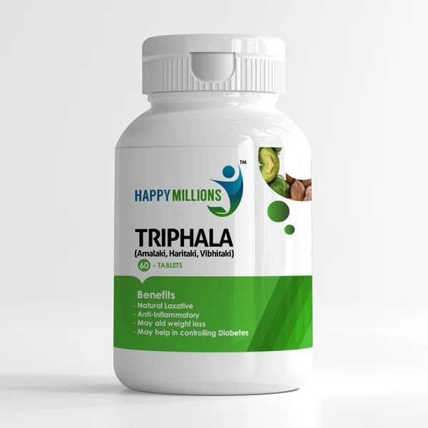 Revitalize your digestive health with HappyMillions Triphala Tablets, a natural Ayurvedic supplement crafted to support digestion, improve bowel wellness, and relieve constipation. This powerful blend of three fruits—Amla (Indian Gooseberry), Bibhitaki, and Haritaki—works synergistically to enhance nutrient absorption, cleanse the intestines, and promote regular bowel movements.