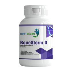 HappyMillions BoneStorm D Tablets provide a powerful blend of essential nutrients designed to support strong, healthy bones and overall skeletal health. Enriched with Vitamin D3, these tablets help improve calcium absorption, ensuring your bones stay resilient and robust. Whether you're aiming to maintain bone density, prevent deficiencies, or enhance joint mobility, BoneStorm D is crafted to meet your bone health needs. Embrace an active, worry-free lifestyle with this targeted formula that complements daily nutrition, making it perfect for anyone looking to strengthen their foundation from within.