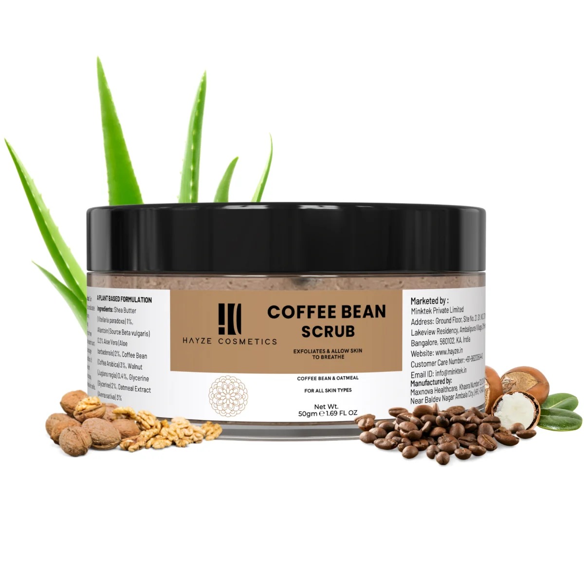 Hayze Coffee Bean Scrub is a 100% Vegan product. These are made with the goodness of real coffee beans, shea butter, oatmeal extract, walnut, glycerin, and aloe vera to get rid of skin imperfections and give you a radiant complexion. It deeply cleanses your skin, unclogs pores, removes dead skin cells, dirt, and excess oil.