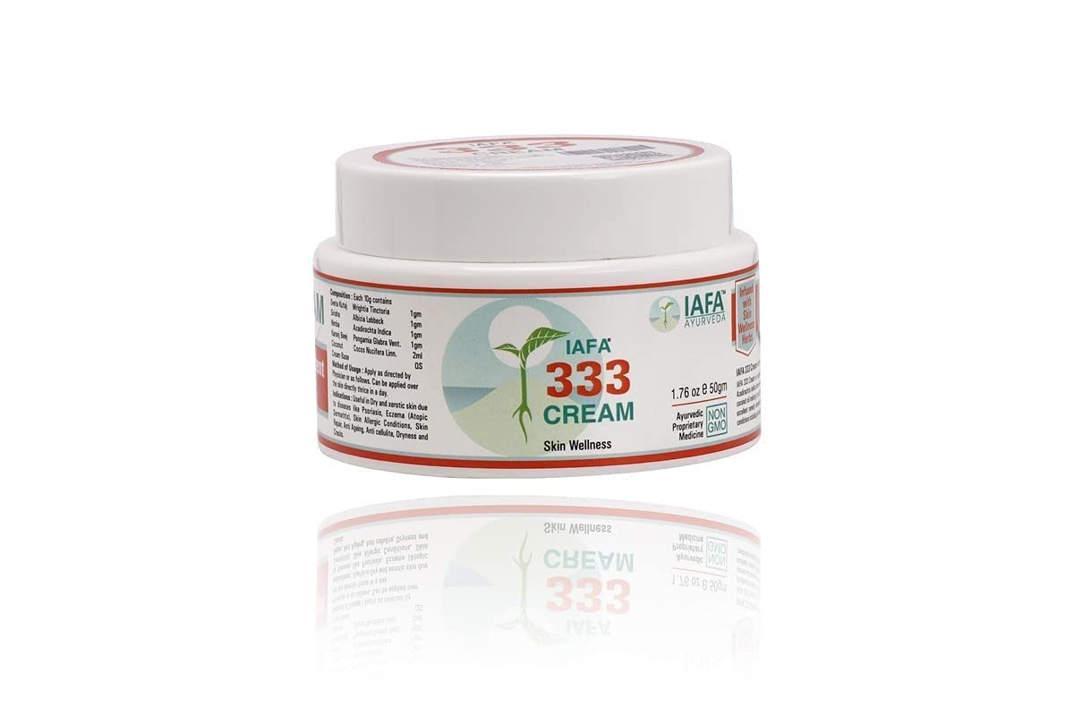 Iafa 333 Cream is beneficial for preserving skin health, retaining skin hydration, and assisting with skin restoration. It aids in the prevention of premature ageing symptoms such as fine lines and wrinkles by reducing skin rashes, rashes, and inflammation. It contains Sirisha, which improves the appearance of the skin and protects it from allergies. It also contains Karanj beej, which is useful for skin issues like itching, pain, or bleeding in eczema or abscess. It aids in the rapid healing of wounds and gives pain relief.