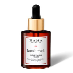 Kama Ayurveda’s bestselling Kumkumadi Facial Oil offers a complete solution for youthful and radiant skin. Suitable for all skin types, this 100% original formulation revitalises skin’s youthful brightness, corrects dark spots, evens skin tone, and enhances skin’s defences against ageing stressors — resulting in overall skin rejuvenation. This luscious, fine oil is an Ayurveda legend powered by modern science, featuring a unique blend of 14 Ayurvedic ingredients, including Saffron, Sacred Lotus, and Indian Madder.