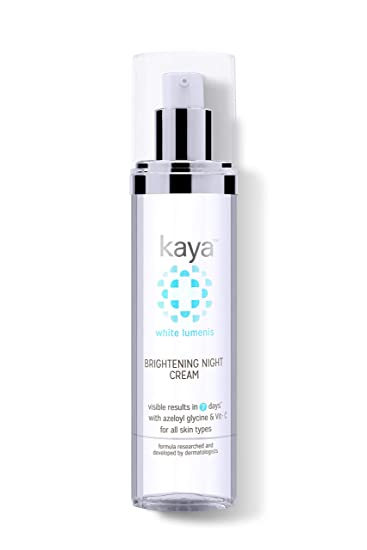Kaya Brightening Night Cream is a must-have night moisturizer that contains Azeloglycina and Antioxidant Vitamin C that fights free radicals, dark spots and improves skin texture. This skin brightening cream is specially formulated to work at night to give you a notably brighter complexion when you wake up in the morning